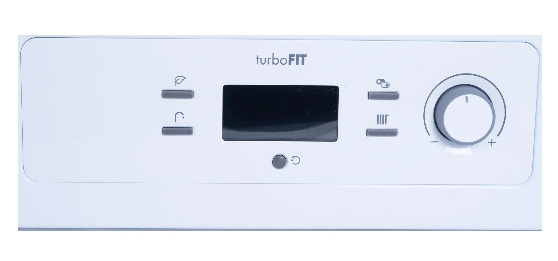 Панель управления оснащена жидкокристаллическим дисплеем и интуитивно понятными кнопками: кнопка eco, кнопка режима отопления (вкл/выкл и настройка температуры), поворотная кнопка (вкл/выкл, настройка), кнопка reset для сброса ошибок. Дисплей отображает текущую температуру, режимы работы и коды ошибок.