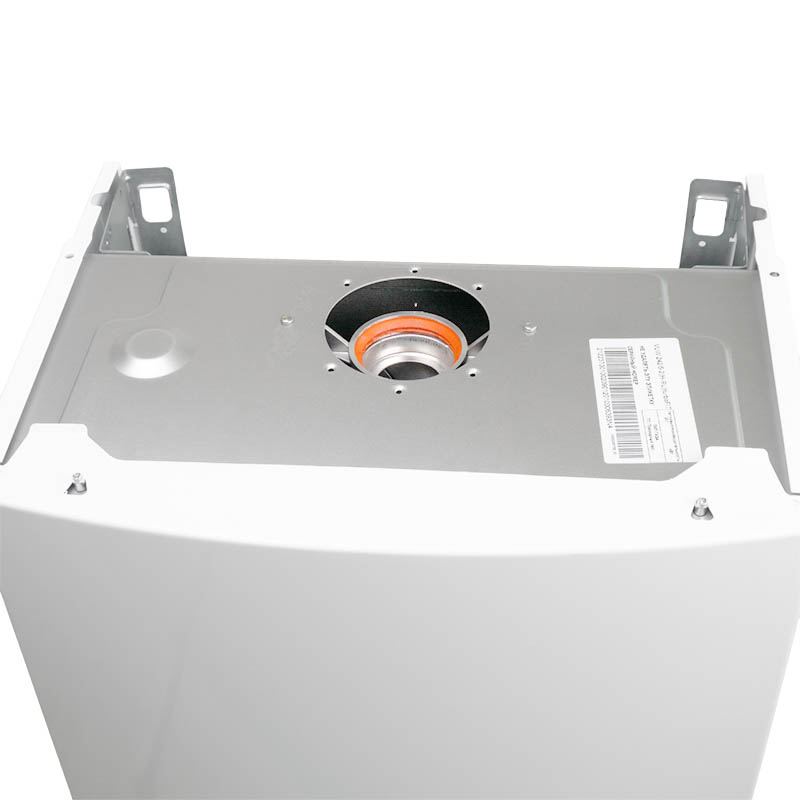 Тип камеры сгорания закрытая (турбированная). Это позволяет устанавливать котел в помещениях без традиционного вертикального дымохода. Продукты сгорания удаляются принудительно через коаксиальный или раздельный дымоход, что исключает сжигание кислорода из помещения и повышает безопасность эксплуатации.