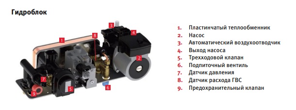 Производительность горячего водоснабжения составляет 11–11,4 литра в минуту при нагреве воды на Δt=30°C. Переключение в режим ГВС происходит автоматически при открытии крана горячей воды, а нагрев воды занимает всего около 2 секунд.
