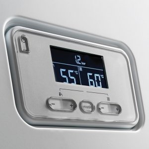 Панель управления оснащена ярким жидкокристаллическим дисплеем, который отображает текущую температуру, давление теплоносителя, режимы работы и коды ошибок. Дисплей позволяет постоянно контролировать весь процесс работы котла.