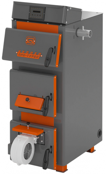 Твердотопливный напольный котел Теплодар Куппер ПРО Турбо 22 (1.1) это высокоэффективное отопительное оборудование с водяной рубашкой, принудительной подачей воздуха (турбонаддувом) и автоматическим контроллером, предназначенное для отопления жилых и коммунально-бытовых помещений площадью от 150 до 220 м². Модель сочетает надежную стальную конструкцию толщиной 3 мм, развитую поверхность теплообмена, водотрубный колосник, а также встроенную автоматику, управляющую вентилятором наддува и циркуляционным насосом, что позволяет значительно повысить КПД, увеличить продолжительность горения на одной закладке и снизить расход топлива.