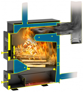 Конструкция топочного пространства. Внутри топочного канала за загрузочной дверцей установлена чугунная створка котла (ЗТ-1,8), защищающая от просыпания горящего топлива при открывании дверцы. Через пазы в створке можно осуществлять шуровку топлива без риска выпадения углей.