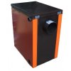 Регулятор тяги - устанавливается в патрубок 15 на выходе из корпуса котла и выполняет следующие функции - считывание показаний температуры воды в системе отопления и в случае необходимости - регулировку подачи первичного воздуха для горения под колосниковую решетку котла, при этом открывая или закрывая заслонку. Таким образом, появилась возможность регулировать интенсивность горения положением регулировочной заслонки. Терморегулятор соединен с заслонкой 9 специальной цепочкой, присоединенной к рычагу заслонки 10 дверцы зольника 12 с таким расчетом, чтобы была возможность регулировки ее натяжения.