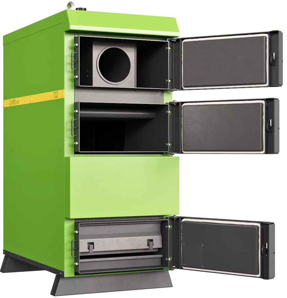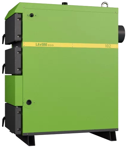 Твердотопливный напольный котел LAVORO ECO L-72 это энергозависимое (полуавтоматическое) отопительное оборудование с водяной рубашкой из специальной котловой стали 09Г2С толщиной 5 мм, предназначенное для отопления жилых и общественных помещений площадью от 300 до 700 м². Модель относится к серии L, оснащена контроллером ECO100 и дутьевым вентилятором для автоматического поддержания горения, что обеспечивает высокий КПД и длительную работу на одной закладке дров.