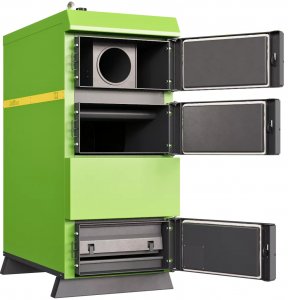 Конструкция топочного пространства. Котел имеет стальной сварной теплоизолированный каркас, обшитый съемной декоративной облицовкой. Теплообменник трубчатого типа, изготовлен из стали 09Г2С (минимальная толщина стенок топки – 5 мм). Внутреннее пространство включает камеру сжигания, воздухоподводящие каналы и систему дымоудаления. В нижней части расположена колосниковая решетка для размещения топлива и выдвижной зольный ящик для сбора и удаления золы.