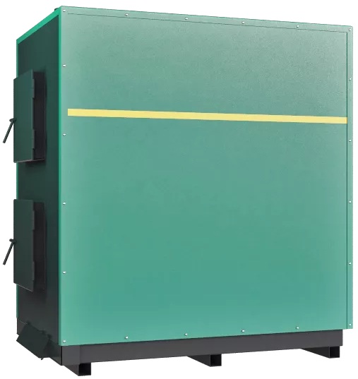 Пиролизный принцип работы. Котёл имеет двухкамерную конструкцию: нижняя камера – камера тления (пиролиза) с ограниченным доступом воздуха, верхняя камера – камера дожига пиролизных газов. Древесина тлеет при высокой температуре, выделяя древесные газы, которые смешиваются со вторичным воздухом через эжекторы (трубы с отверстиями из толстостенной стали) и сгорают в верхней камере. Это обеспечивает практически полное сжигание топлива, высокую экологичность и эффективность. В котлах мощностью 250 кВт и более эжекторы проложены по боковой части верхней камеры.