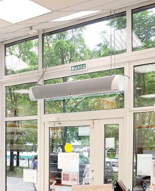 Класс защиты IP21 – Корпус защищён от проникновения твёрдых частиц диаметром более 12 мм и от вертикально падающих капель воды. Это позволяет эксплуатировать завесу в обычных и умеренно влажных помещениях (но не в автомойках и банях).