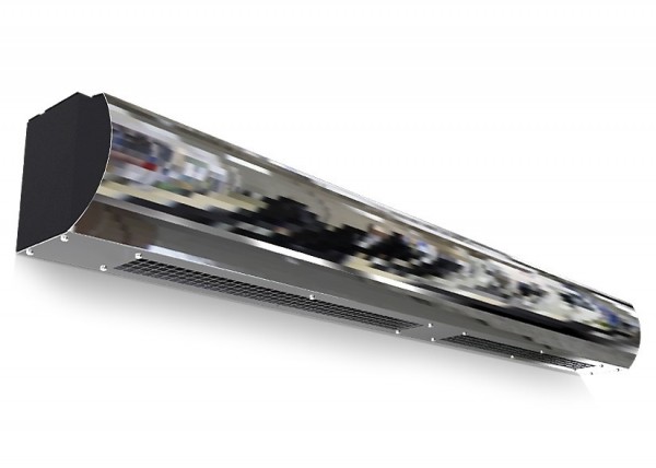 Электрическая тепловая завеса Тепломаш КЭВ-10П1063Е серии 100 Бриллиант Мини, это энергозависимое оборудование с возможностью горизонтальной или вертикальной установки, предназначенное для защиты рабочих зон общественных и административных зданий от проникновения наружного воздуха через открытые двери и окна в холодный период времени, а также для работы в режиме вентиляции без нагрева в тёплое время года. Модель является самой мощной в линейке «Мини» с электрическим источником тепла (длина 1505 мм), имеет стальной оцинкованный корпус с порошковым покрытием и съёмную лицевую панель с декоративными гранями из полированной нержавеющей стали (исполнение «Бриллиант»). Завеса оснащена встроенными кронштейнами для монтажа, двумя вентиляторными блоками, электромагнитными контакторами (реле) и проводным пультом HL10 с электронным термостатом, а также дистанционным инфракрасным пультом. Рекомендуемая проектная высота защищаемого проёма – до 2 метров в зависимости от климатических условий.