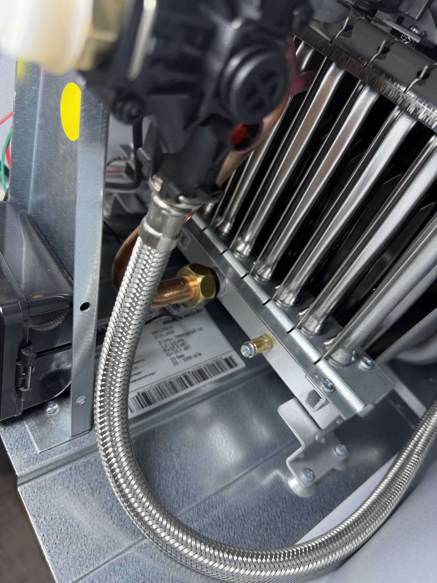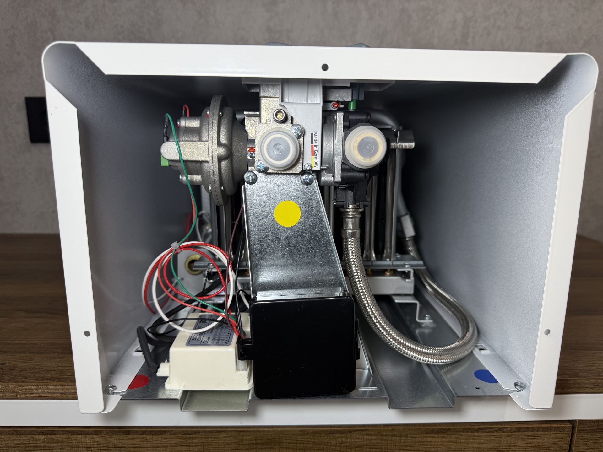 Немецкая арматура Mertik надежный водно-газовый узел, обеспечивающий работу при низком давлении воды (от 2,5 л/мин). Она предотвращает протечки за счет изоляции подвижных частей от воды, обеспечивает КПД до 92%.