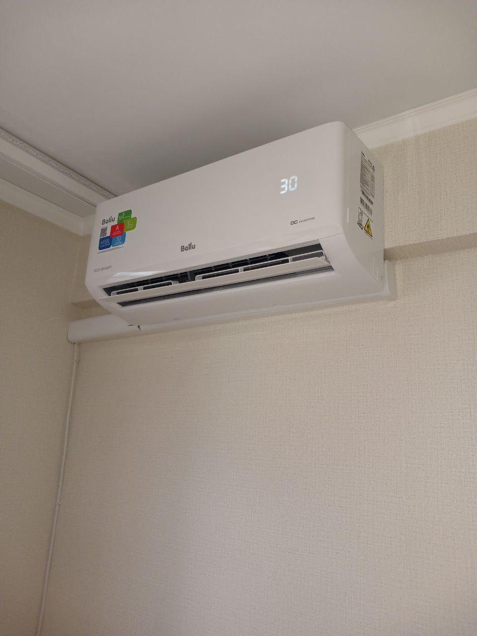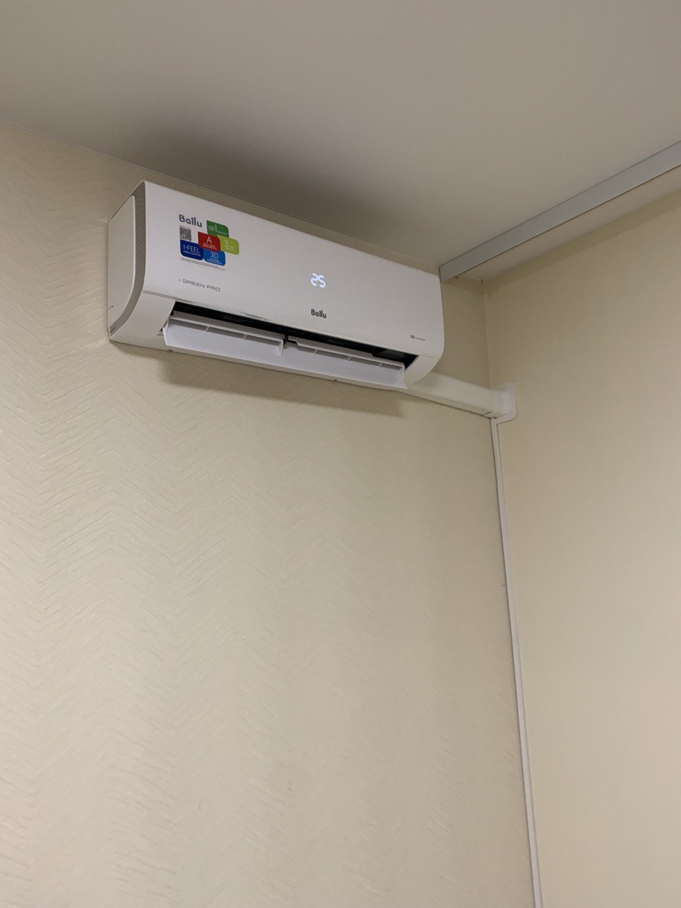 Задача: Установка инверторной сплит-системы (модель BALLU BSYI-09HN8/ES_23W), приобретённой в нашей компании. Основная сложность объекта заключалась в наличии бетонной балки под потолком комнаты, которая препятствовала стандартному размещению внутреннего блока, а также в необходимости прокладки коммуникаций через лоджию с сохранением её отделки.