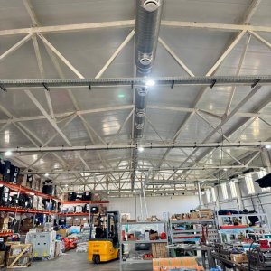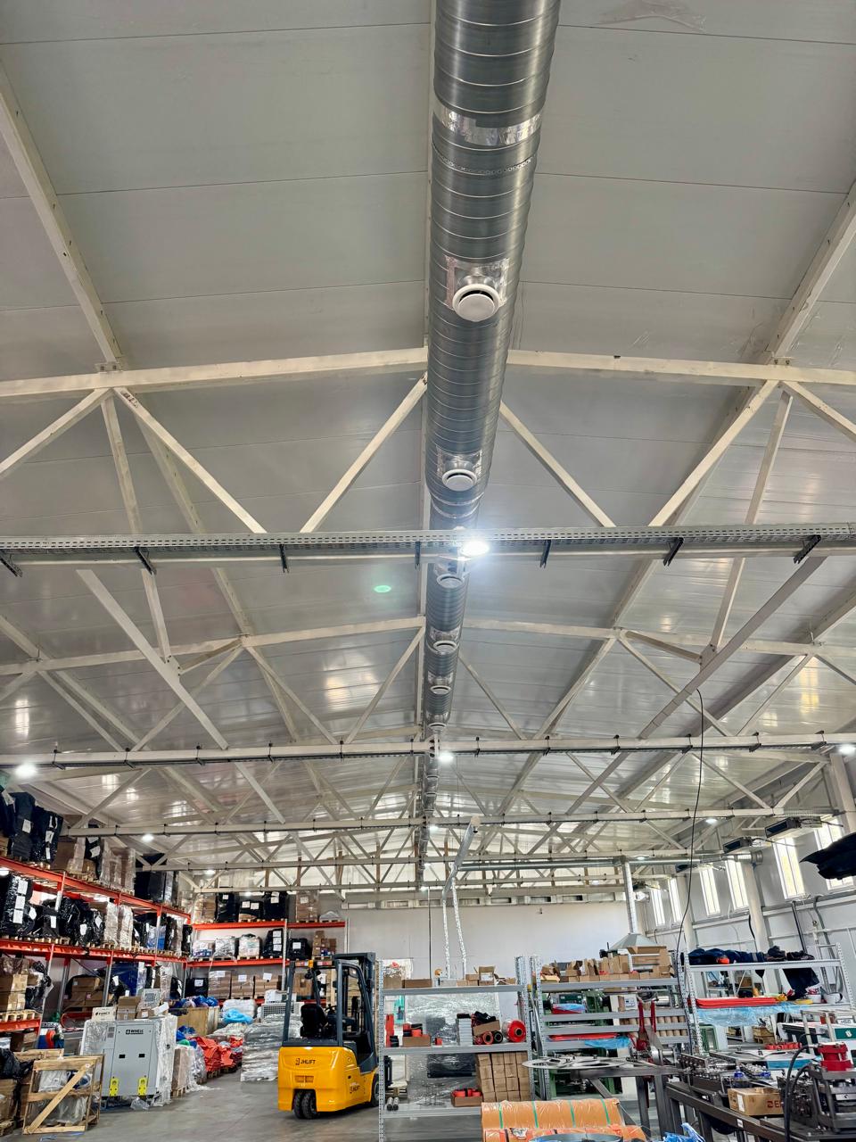 Задача: Комплексное оснащение производственного цеха эффективной системой приточно-вытяжной вентиляции. Требовалось выполнить подбор оборудования на основе расчётов воздухообмена, смонтировать сеть воздуховодов из оцинкованной стали с учётом особенностей помещений и обеспечить автоматическое управление системой.