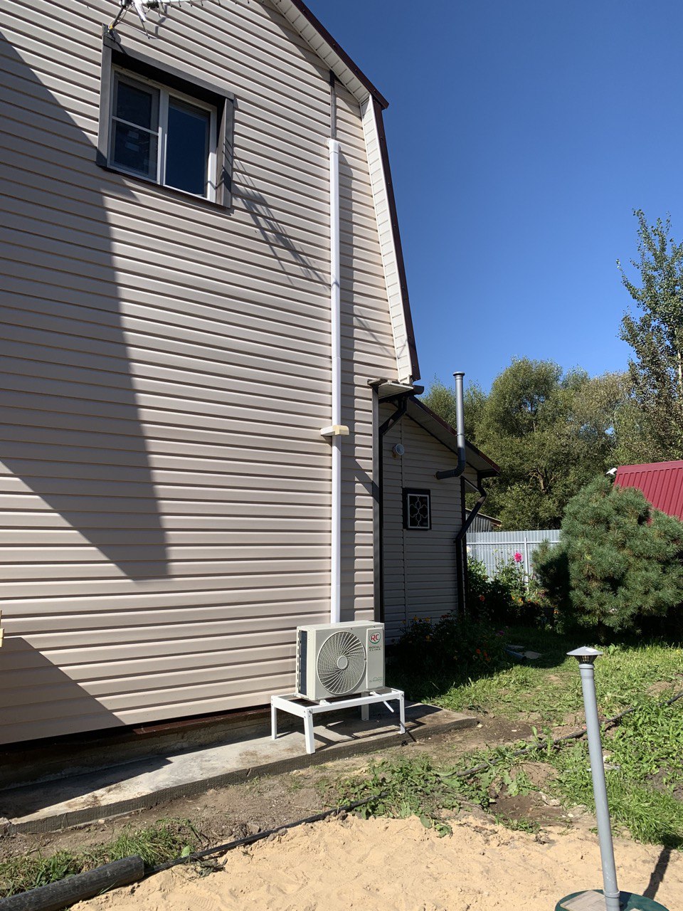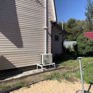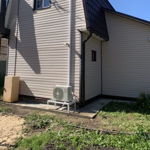 Результат: В доме обеспечен комфортный микроклимат с возможностью управления кондиционером удалённо через Wi-Fi. Установка наружного блока на отмостку на подставку полностью исключила вибрацию и шум внутри помещений. Коммуникации, проложенные по фасаду, аккуратно задекорированы кабель-каналом Рувинил и не нарушают внешний вид дома. Все работы выполнены профессионально, с учётом конструктивных особенностей каркасного здания. Заказчик получил официальную гарантию на оборудование и монтажные работы от «Профтехресурс».