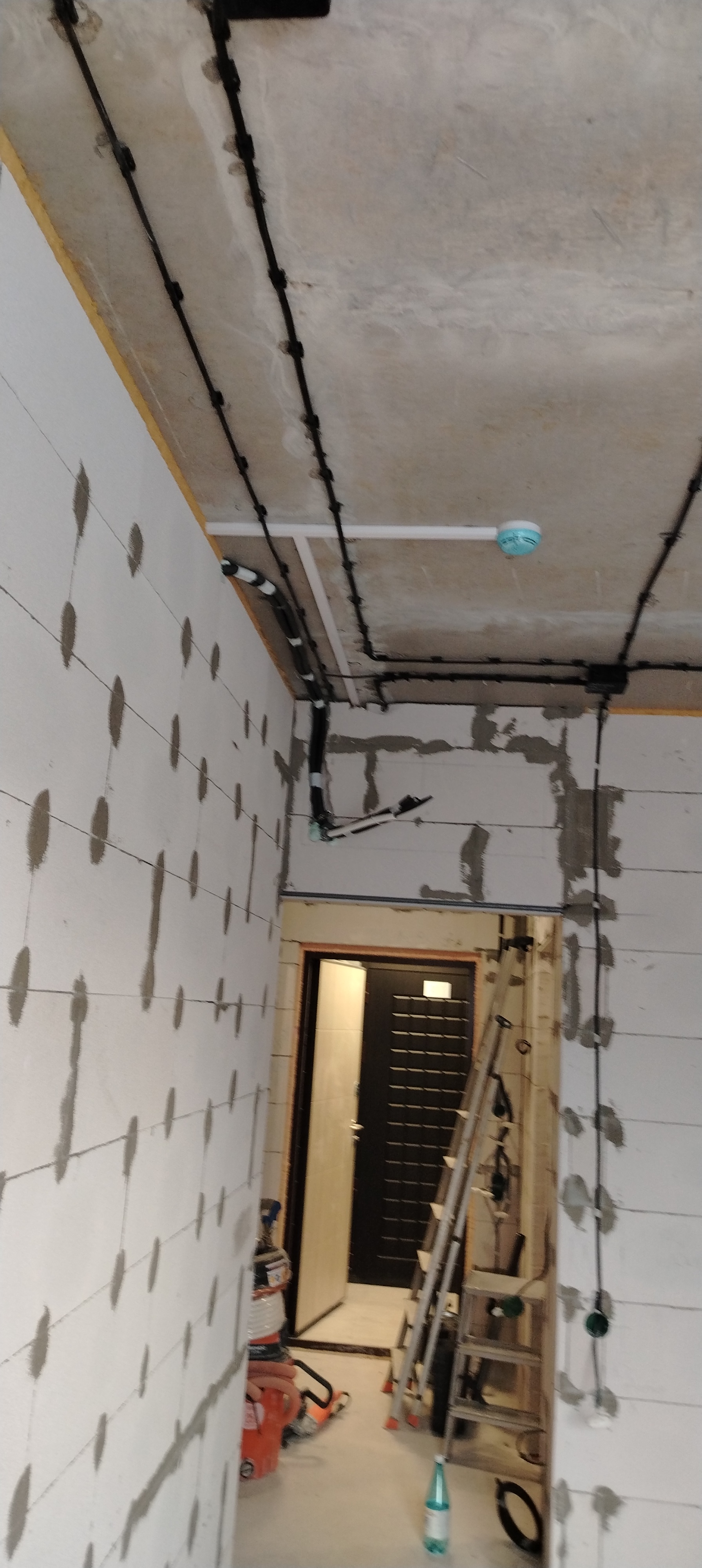 Задача: Подготовка инженерной инфраструктуры (закладка межблочных коммуникаций) на этапе черновой отделки для последующей установки мульти-сплит системы на три внутренних блока.
