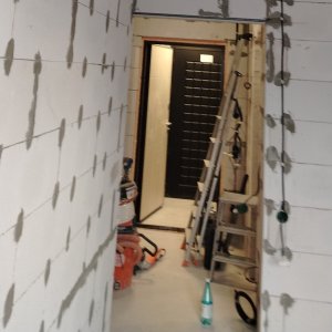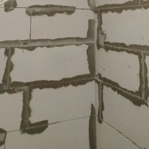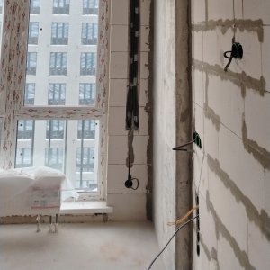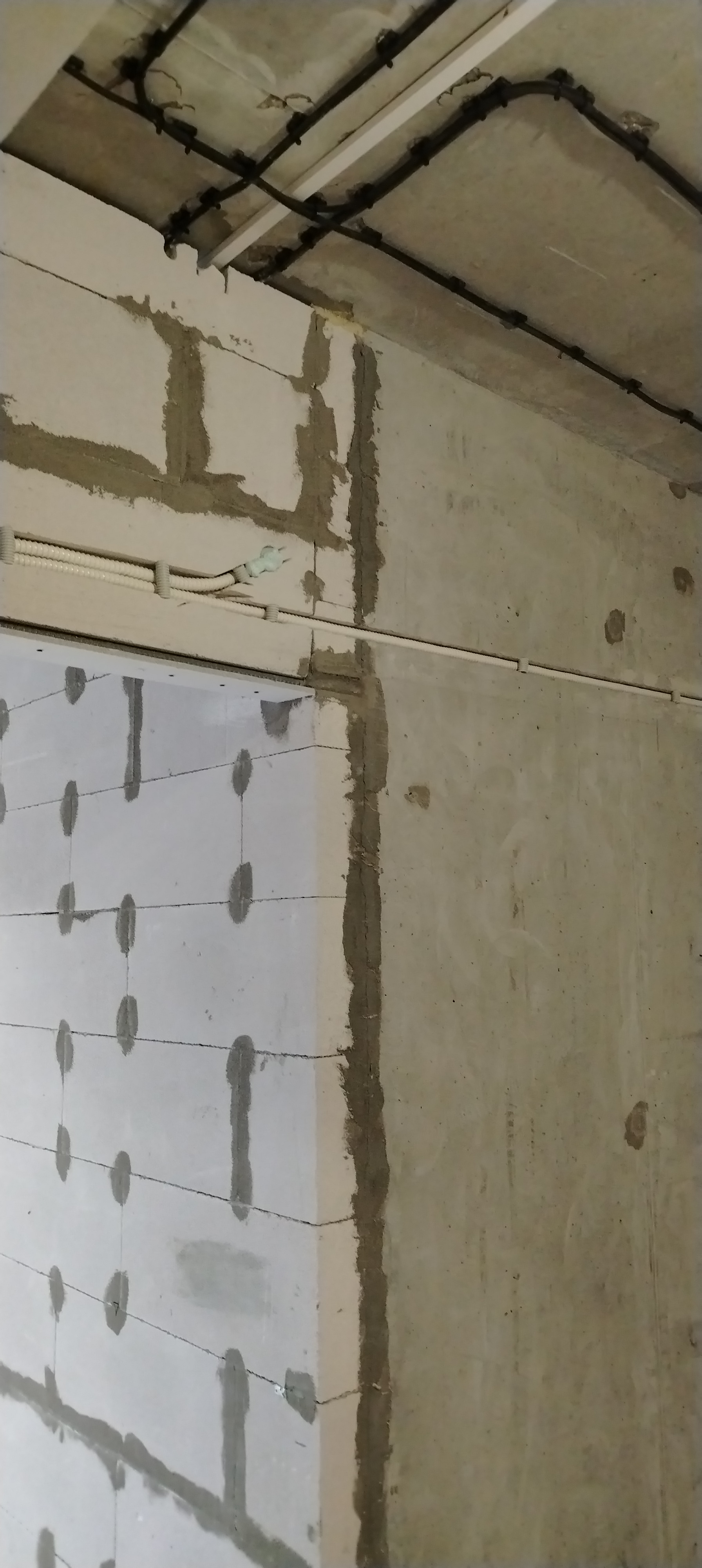 Штробление: С помощью профессионального штробореза и промышленного пылесоса выполнена вырезка штроб в стенах для скрытой прокладки трасс (минимум пыли и грязи).
