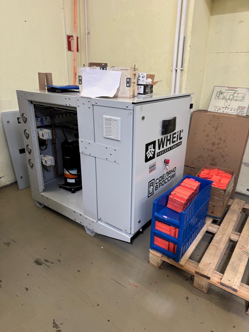 Задача: Обеспечение технологического охлаждения для производственных линий. Монтаж системы на базе чиллера Wheil с выносным конденсатором.